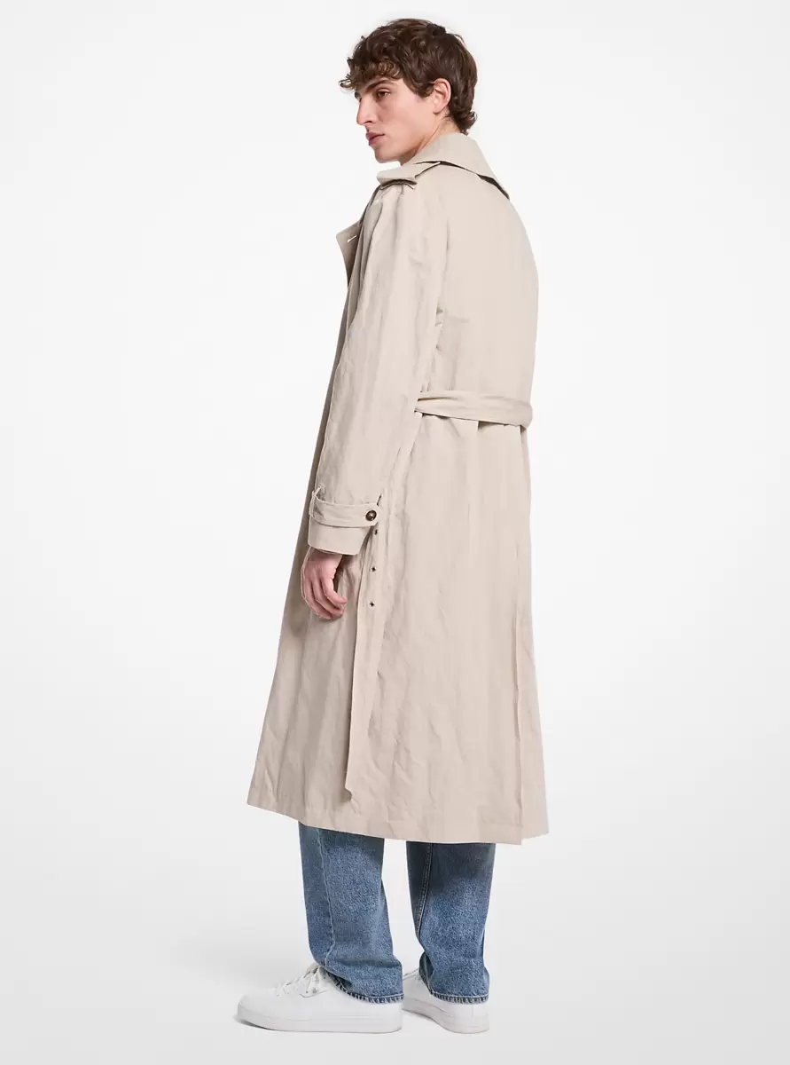 Whether it’s morning commutes or chilly off-duty adventures, a timeless trench is always the answer. Crafted from a crinkled cotton blend, this double-breasted essential is designed with exaggerated lapels and epaulettes to create a polished-yet-relaxed feel.