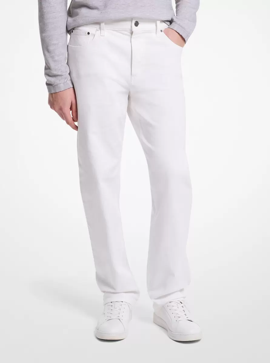 These straight-fit jeans are made from stretch cotton denim in a white wash for a timeless feel, and subtly detailed with logo-engraved silver-tone hardware at the pockets. Reach for them to ground everything from collared shirts to T-shirts.