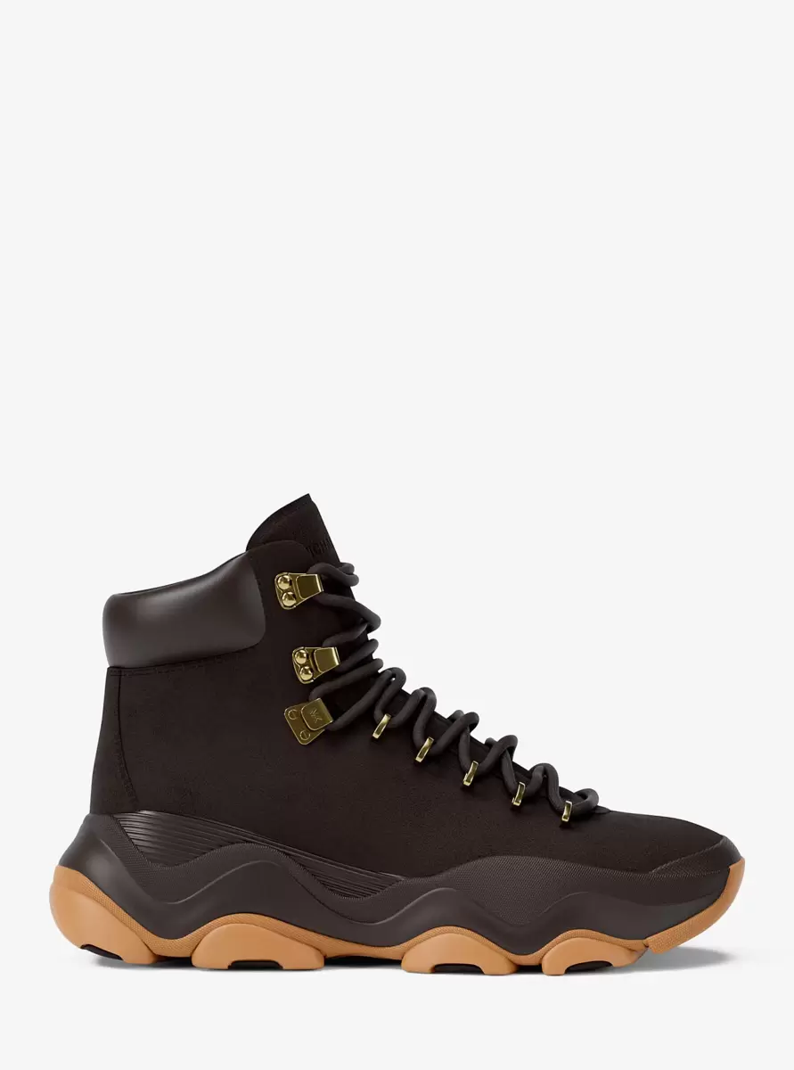 We can’t think of a cooler way to brave the colder months than with the Atlas, a supple suede boot with outdoorsy appeal. Punctuated with polished gold-tone accents, this lace-up pair rests on a sculptural rubber sole for added lift and extra traction. Wear it on off-duty days with an outdoorsy look to create a stylish juxtaposition.