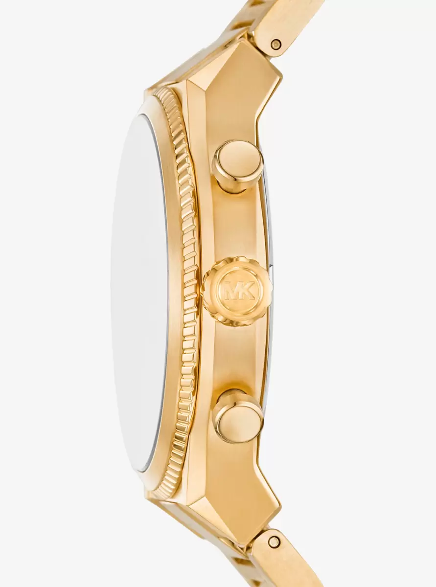 A refined piece for years to come, our Panorama watch is designed with a gold-tone stainless steel beveled strap and topring that’s contrasted by a black-tone face featuring chronograph dials. Count on it for a sophisticated, sporty look any day of the week.
