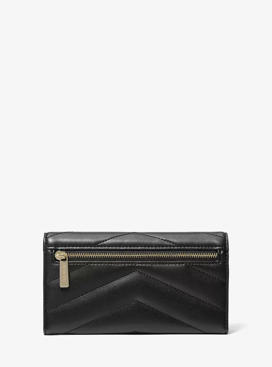 With room for up to 17 cards and more essentials, this large zip wallet is destined to become your on-the-go favorite. The chic quilted exterior gives way to multiple compartments to keep you organized. Throw it into your favorite handbag or carry it solo for a simple ¬¬and glamorous look.