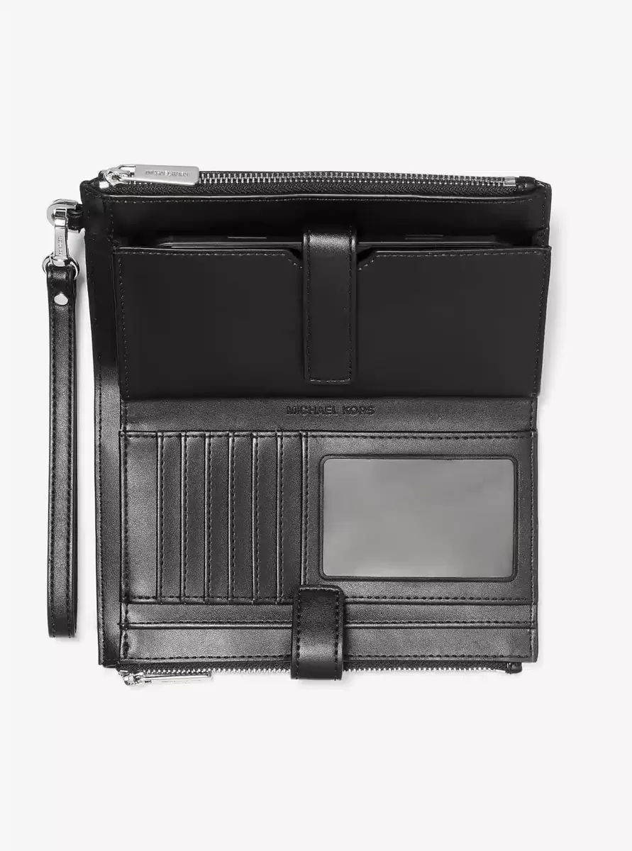 Crafted from our signature-print canvas and leather, this wallet has two zip sides that unfold to reveal a center with pockets for all the essentials—from credit cards to your smartphone. A detachable wristlet strap makes it versatile enough to carry alone or in a tote.