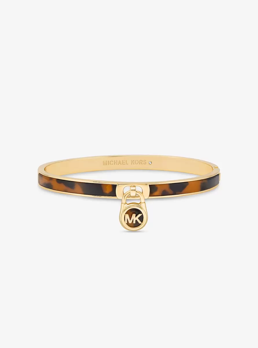 Featuring a charm inspired by the hardware on our beloved Hamilton bag, this gold-tone bangle bracelet is finished with tortoiseshell acetate accents. A hinged button-closure fastening makes it easy to slip on and off.