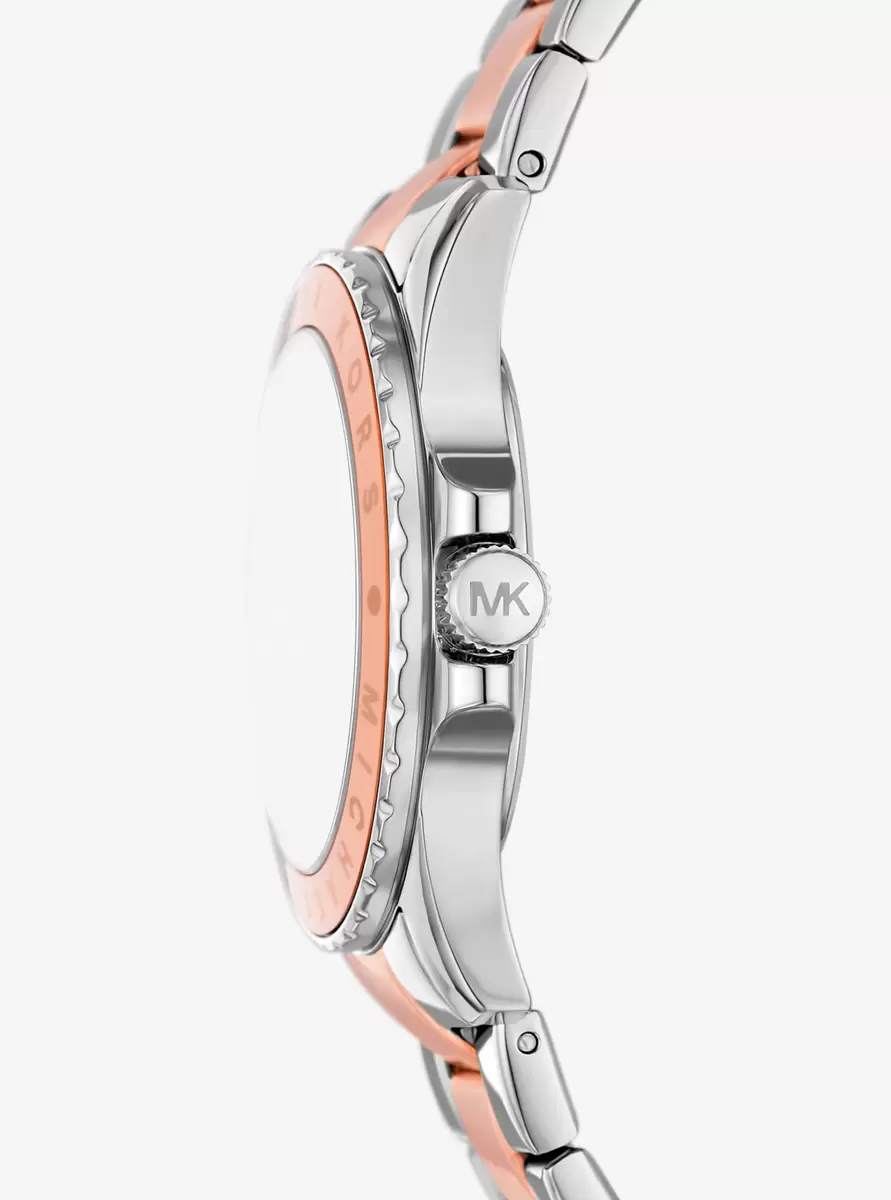 Take timekeeping to icon status with the two-tone Everest watch. Designed with a logo-engraved topring, this stainless steel watch boasts Roman numeral timestamps and an understated dial. Slip it on with everything from office to off-duty looks.