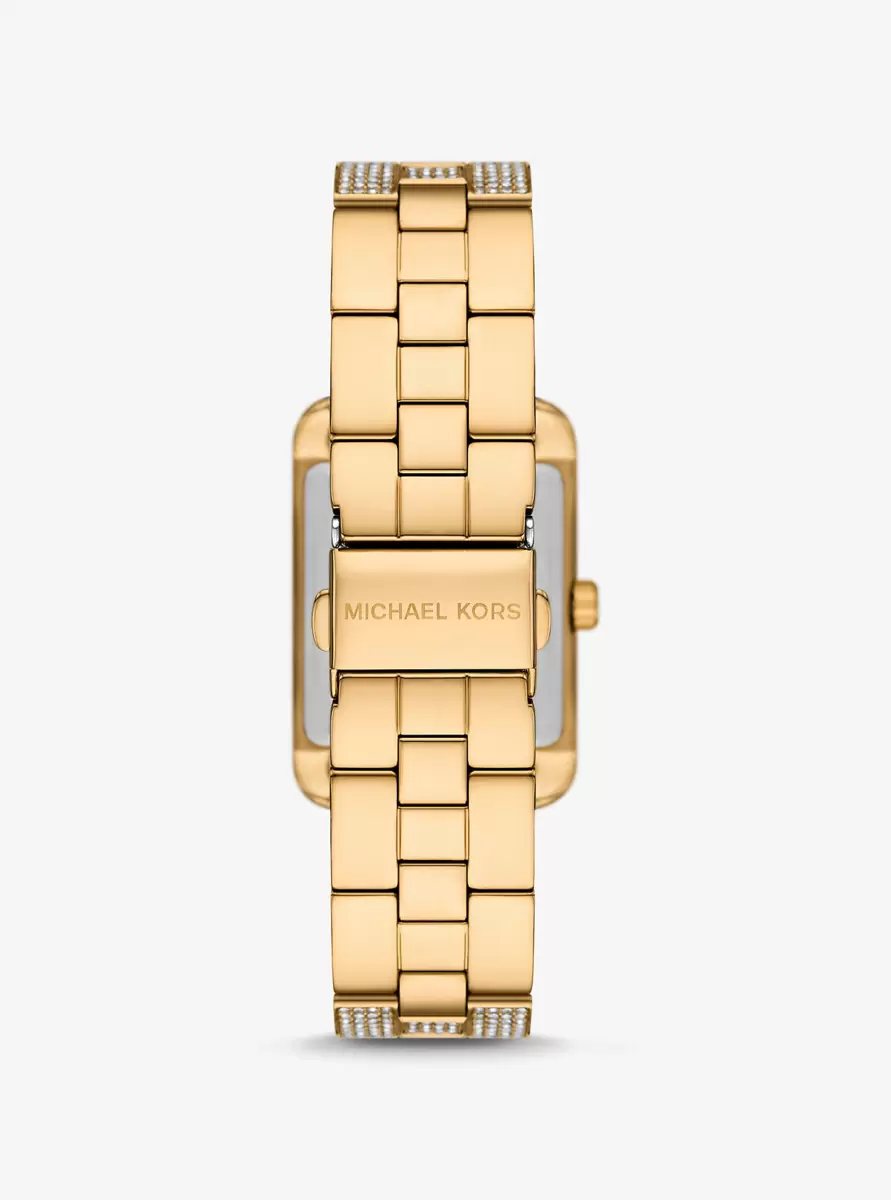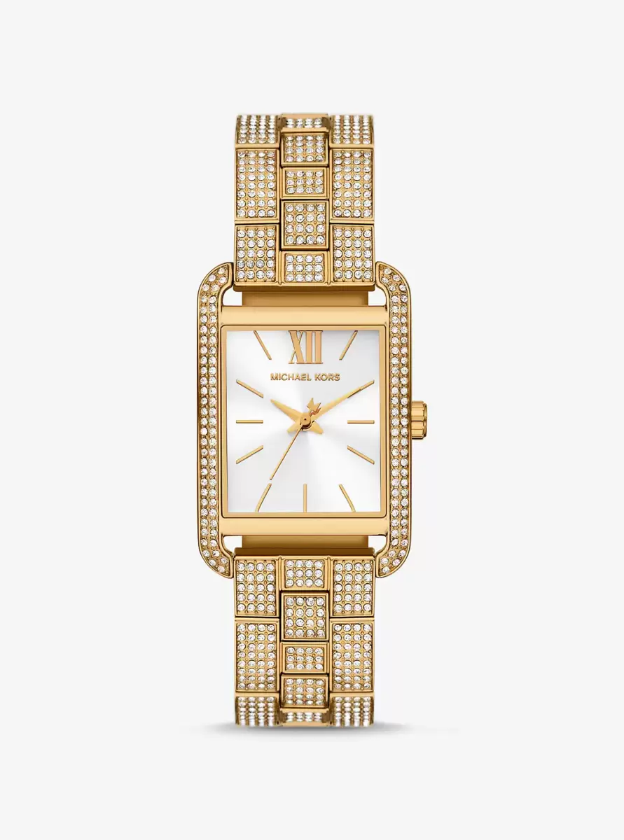Classic and eye-catching, our Monroe watch makes a statement. Allover pavé embellishments give a glamorous impression, while the mid-sized gold-tone casebody and strap make it easy to pair with bracelets and bangles. Create a wrist stack with a variety of metallic hues to amplify its luxe feel.