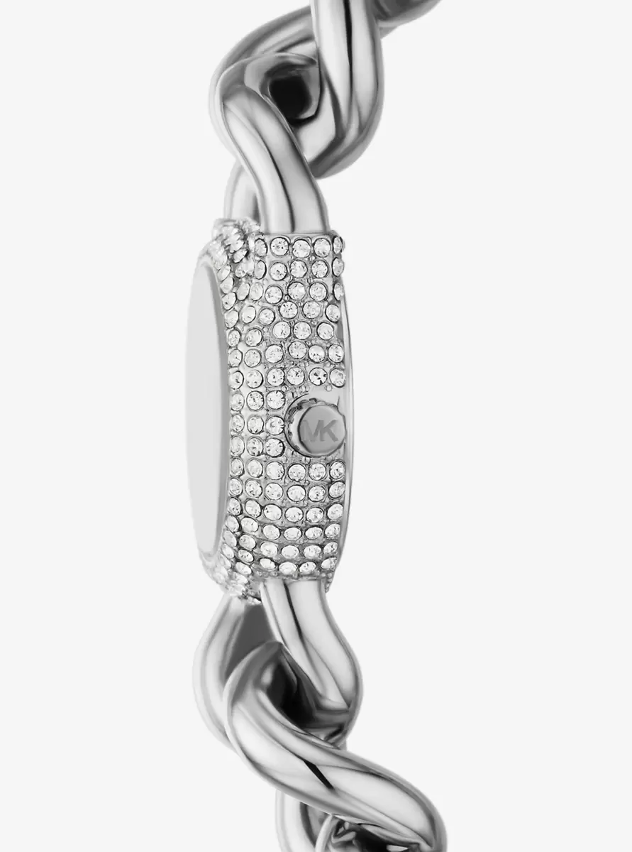 Dial up the drama with Hamilton, an elegant timepiece that draws inspiration from our iconic lock hardware. This silver-tone watch showcases our initials across the minimalist dial, while shimmering pavé accents at the bezel catch the light from every angle. Wear it as a stylish stacking piece alongside the season’s statement jewelry.