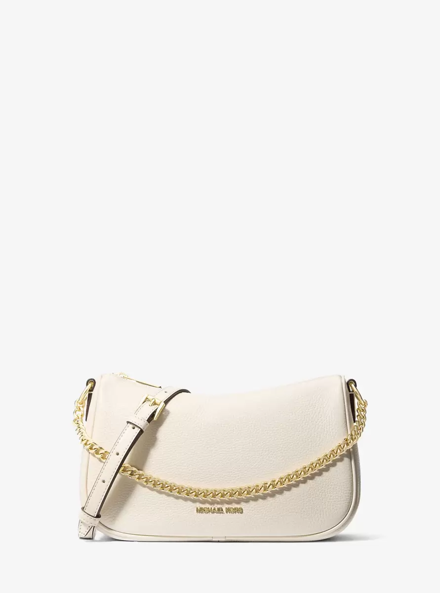 Go from day to evening with our Carmela pochette. Designed in rich pebbled leather, this chic style features a detachable crossbody strap and a gleaming chain-link top handle for optionality. It unzips to reveal an open interior with a side slip pocket for your phone or keys.