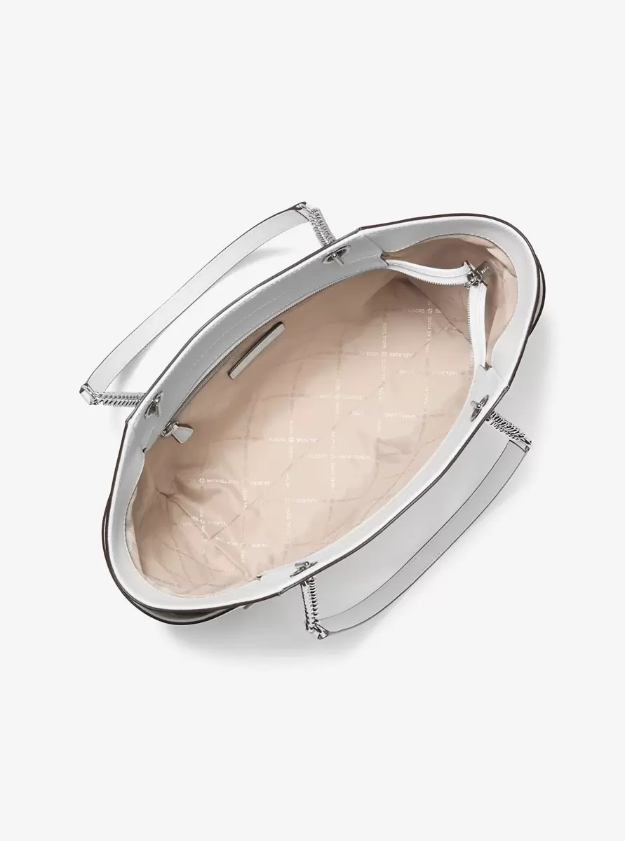 Ready to take you anywhere, this Jet Set shoulder bag is rendered in Saffiano leather and finished with our signature “MK” charm. The structured shape features convenient side pockets and a secure top-zip fastening. Use it to carry all your travel essentials.