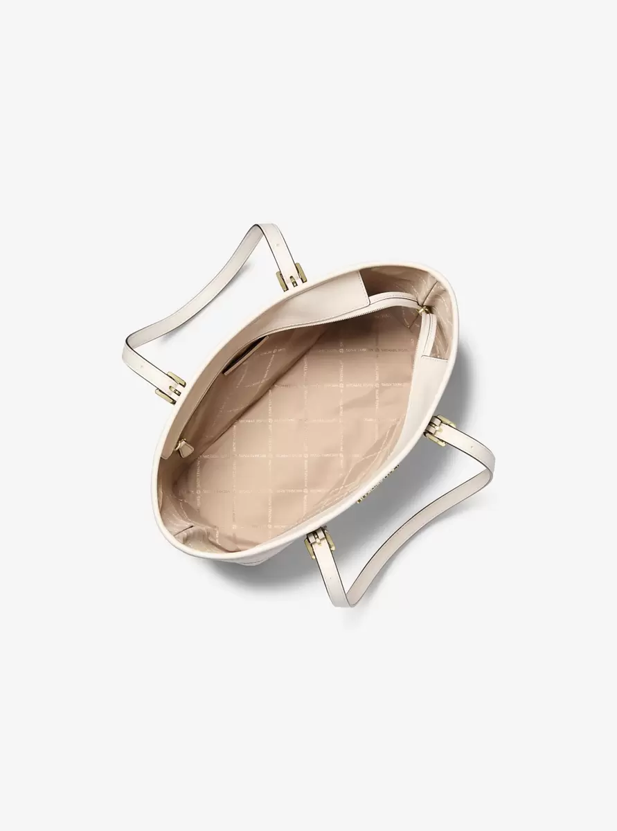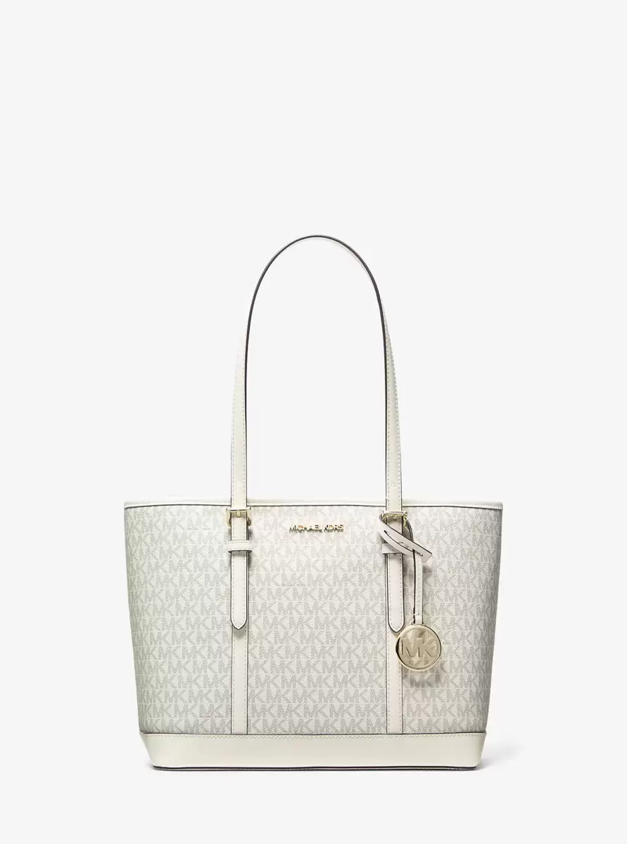 This Jet Set tote bag is the ideal travel companion. A perfect size, it’s roomy enough to store your essentials without weighing you down. Logo-print canvas and a gold-tone charm make a luxe statement, while a top-zip fastening ensures your belongings will stay in place—whether you’re in flight or on the ground.