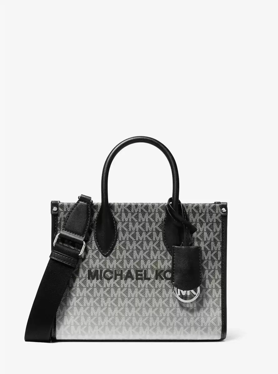 Whether you’re heading to a daytime event or simply running errands, the Mirella will meet the moment. Fit all your essentials into this charming mini tote, which can be carried by the top handles or worn crossbody thanks to a woven shoulder strap. Crafted from Signature logo-print canvas with an ombré finish and charm, it’s a reliable way to spice up any outfit.