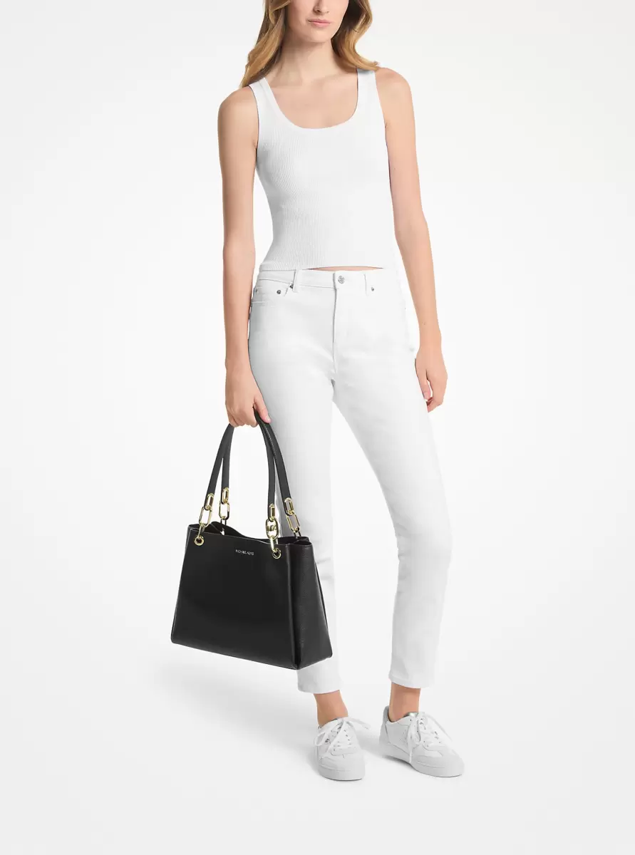 Our heritage-chic Trisha is versatile (and perfect for traveling). Complete with two adjoining snap pockets, this generously sized pebbled leather carryall offers plenty of storage for your essentials. A hidden zip pocket is ideal for storing your wallet or keys.