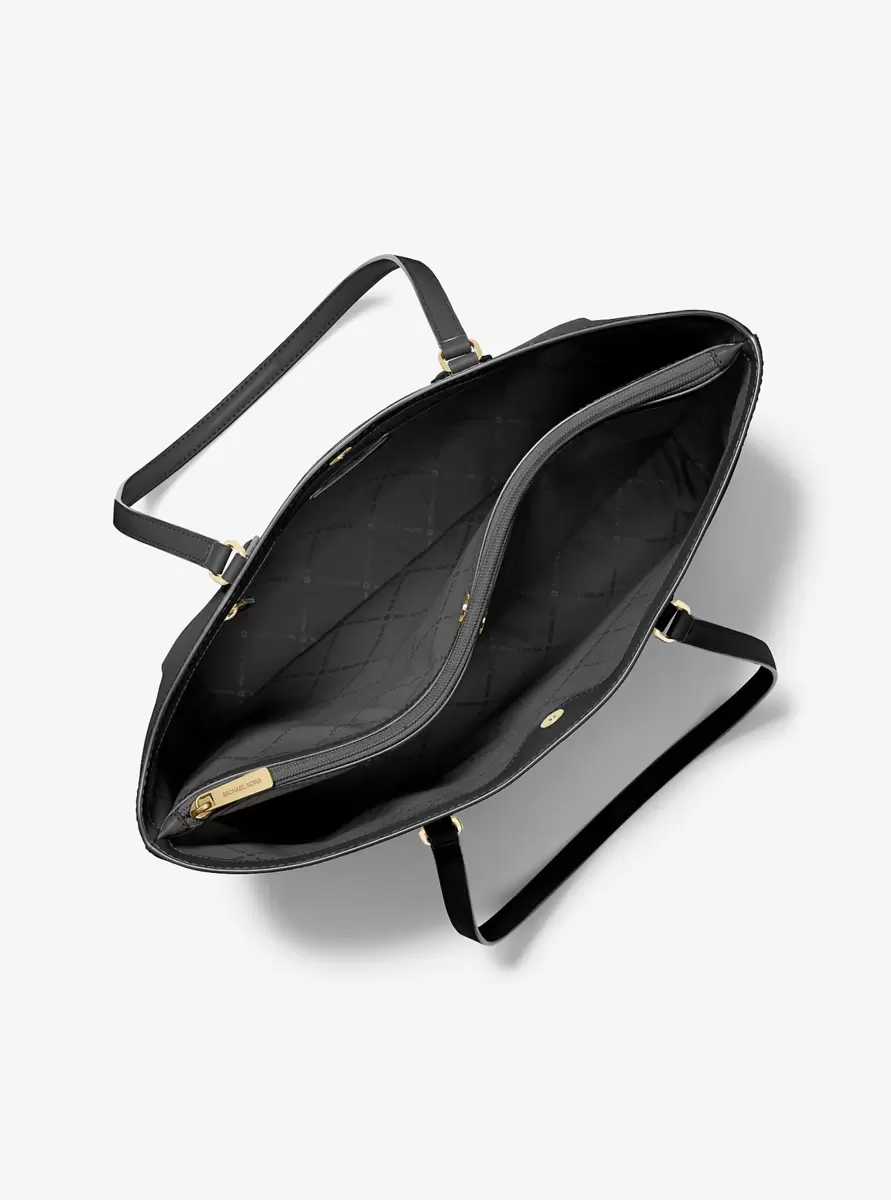 This roomy tote bag is a stylish companion for all those week-to-weekend moments. Crafted from a smooth exterior, the carryall opens to a spacious interior large enough to hold a tablet, phone, book and more. Carry it to balance the season’s bold looks.