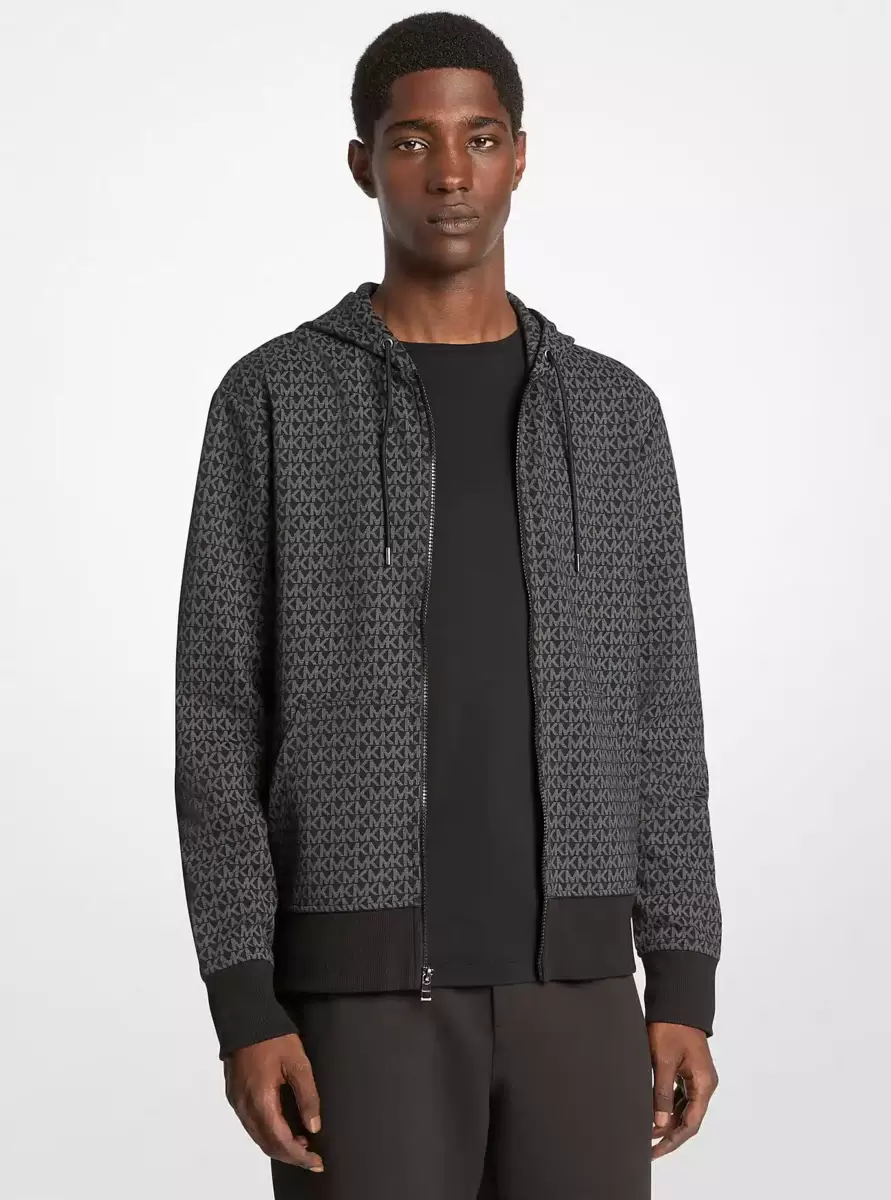 Signature Logo Cotton Blend Zip-Up Hoodie