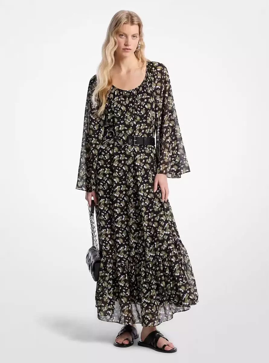 Defined by a versatile-hued floral print this dress is the perfect seasonless staple. It’s designed with a breezy, bohemian silhouette that’s crafted from lightweight georgette to create a romantic feel. Style it with a chunky belt and sandals to complete the look.