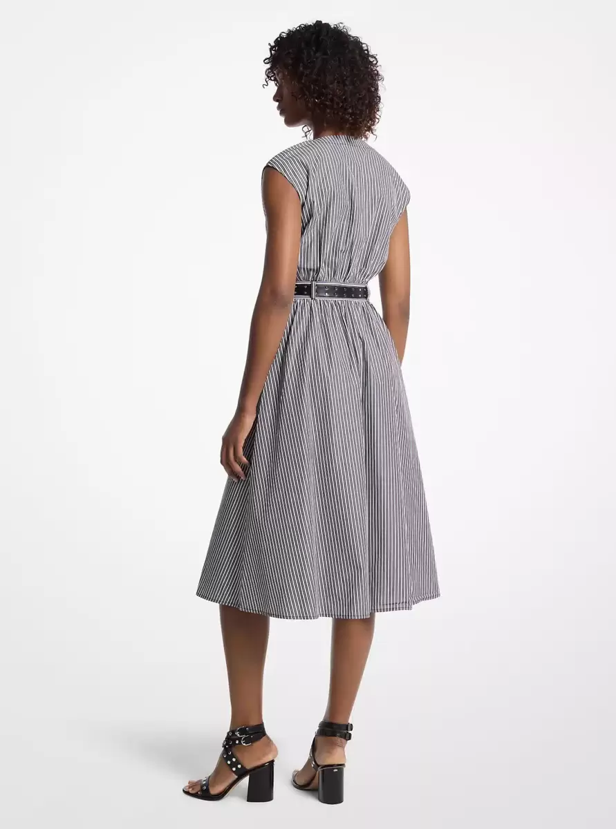 Striped Cotton Poplin Belted Midi Dress