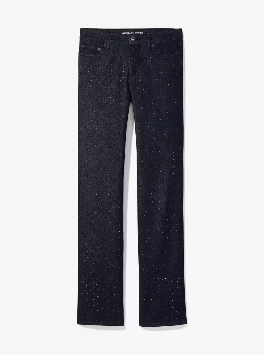 An elevated take on classic denim, these studded jeans are covered in sparkling studs for eye-catching glamour. Designed in a sleek, dark-washed cigarette silhouette, they offer a flattering fit that moves with you. Style them with a fitted tee and leather jacket for an effortless downtown look.
