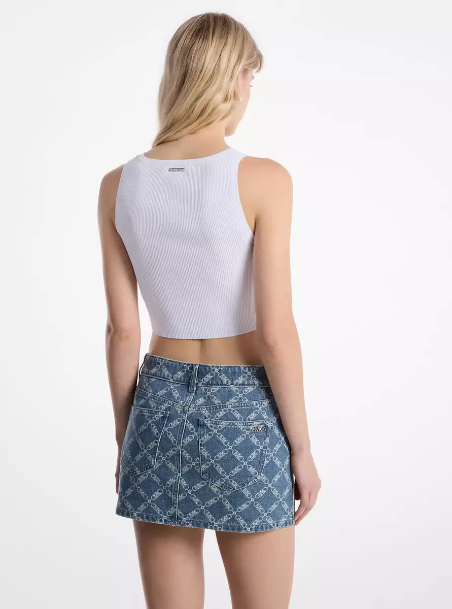 A lightly bleached take on our Empire Diamond print ups the ante on this otherwise classic denim mini skirt. The five-pocket style is crafted from 100% cotton and designed to sit on the natural waist. Keep the focus on the motif with a crisp white tank.