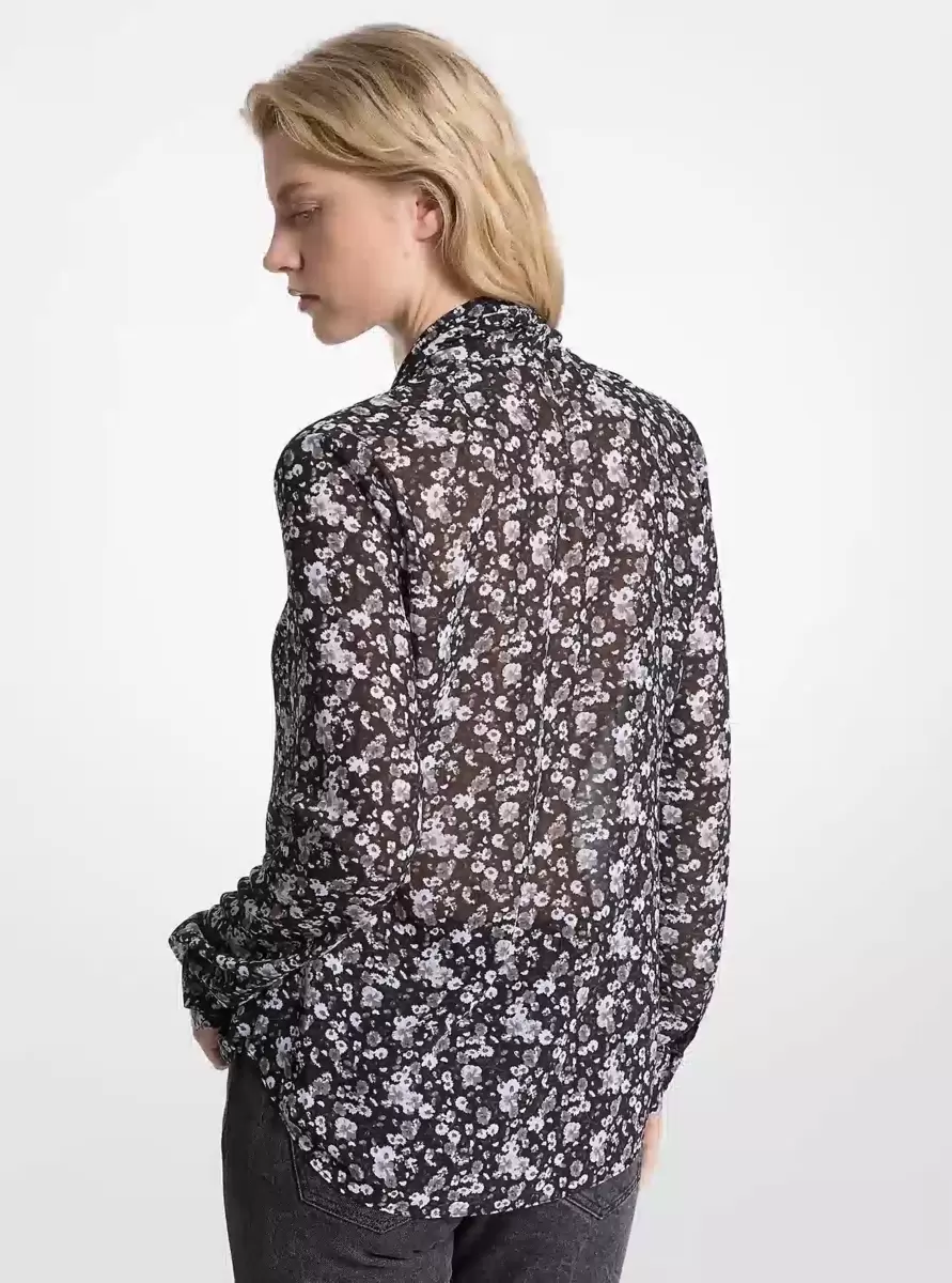 Floral Print Georgette Tie-Neck Blouse