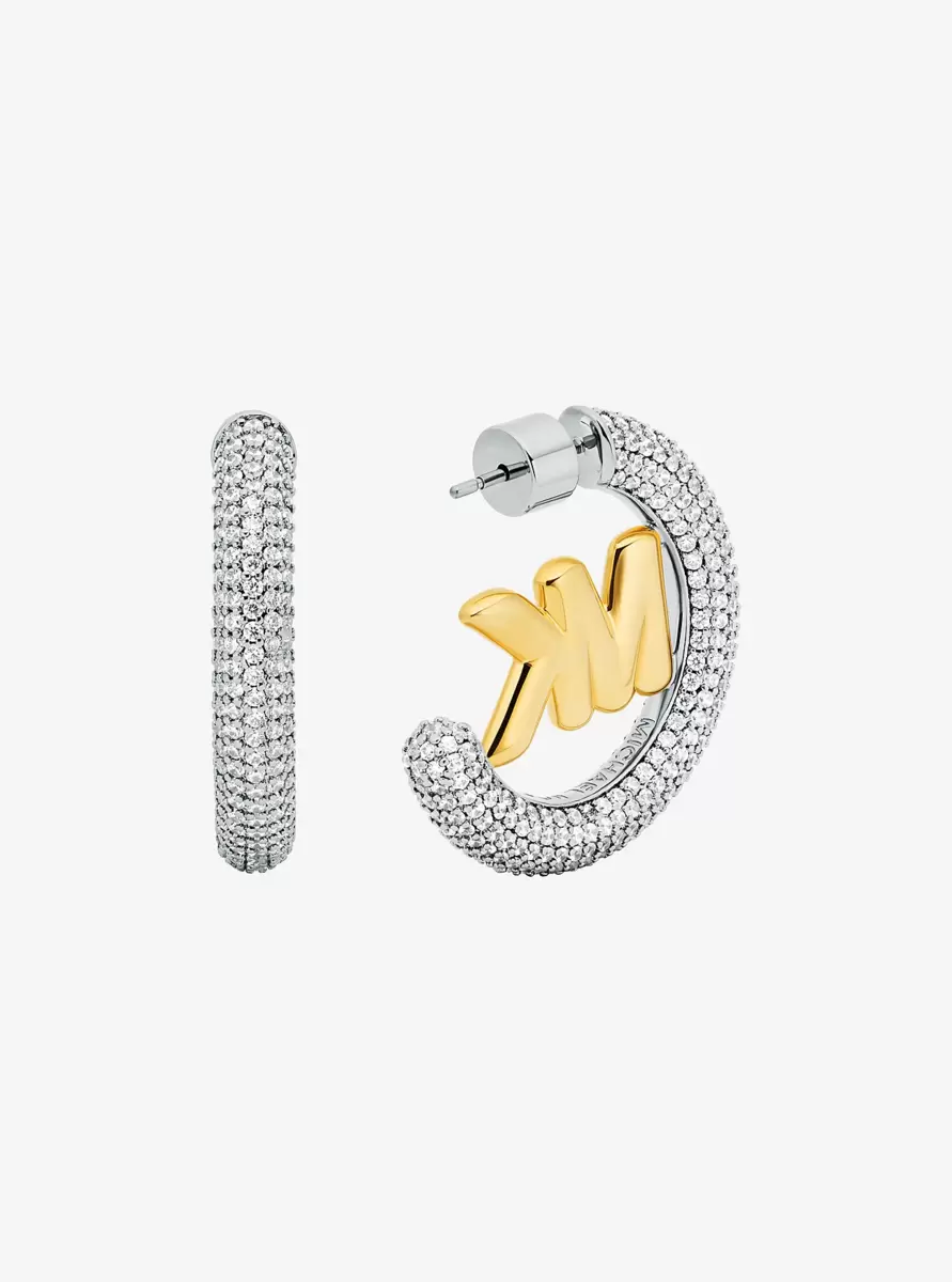 These radiant earrings are a modern twist on the classic hoop. Bringing signature style to everyday looks, they feature our MK Pop Charm subtly centered along a shimmering, precious metal-plated band set with cubic zirconia. Wear them solo or stacked alongside similar styles.