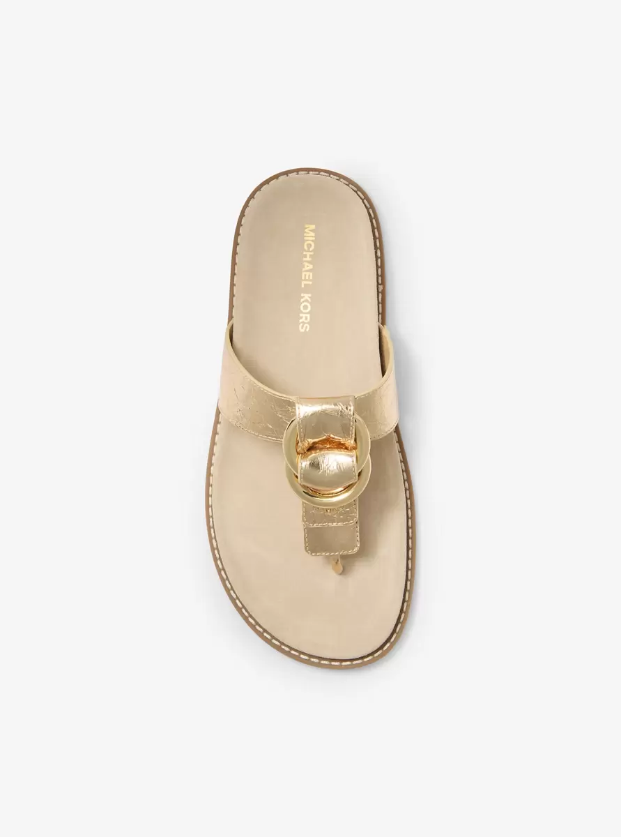 Effortless yet polished, our Jaden slides will quickly become your go-to this season. Crafted from textural metallic leather, they feature gleaming hardware ring details and a curved footbed for extra comfort. Whether paired with a breezy linen set on vacation or with a sleek maxi dress around the city, they’ll give every sunny-day look a touch of shine.