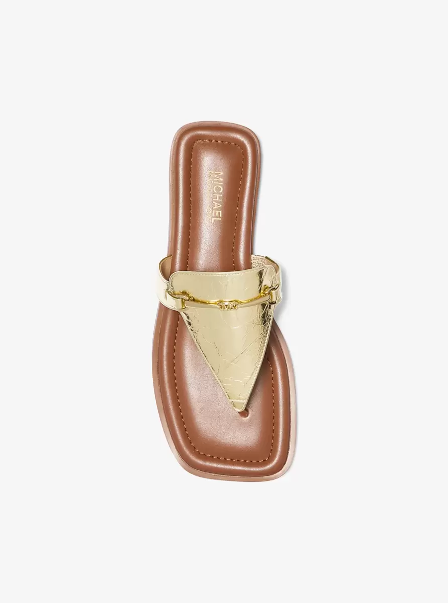Lena Metallic Leather T-Strap Sandal