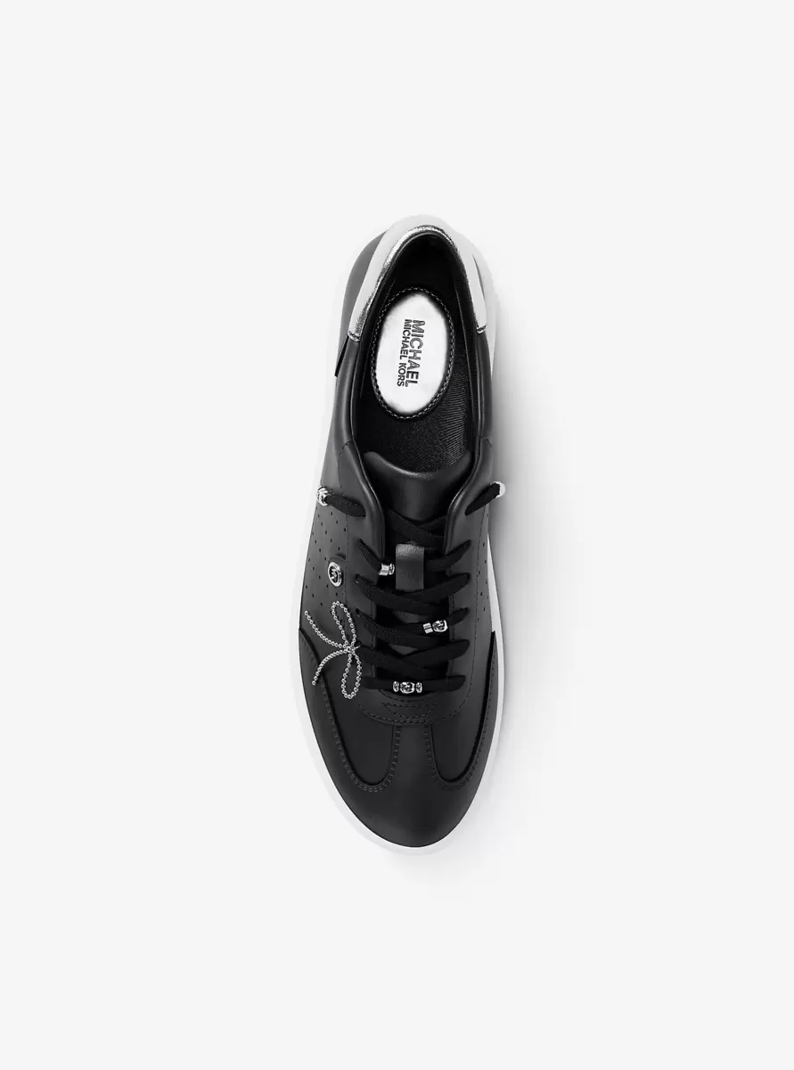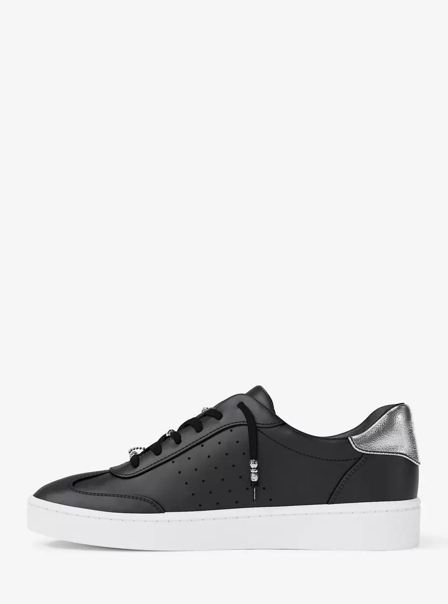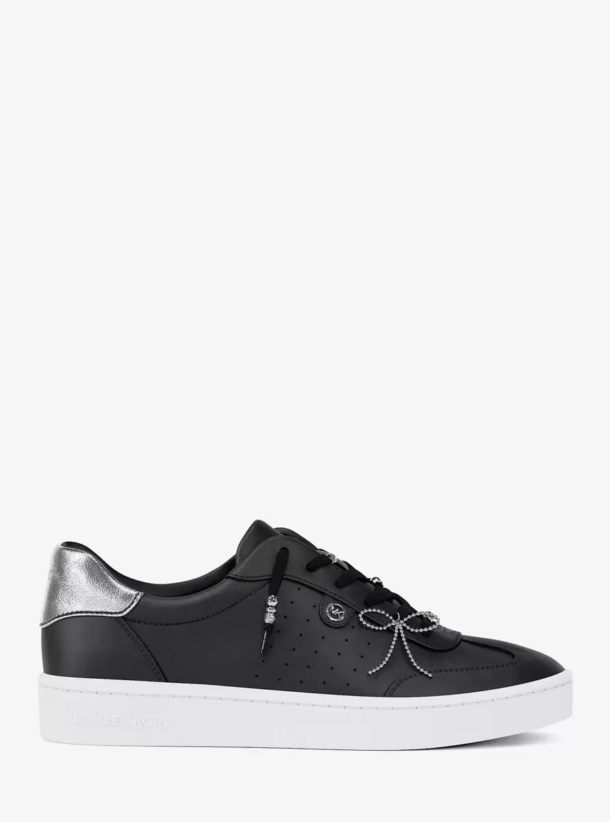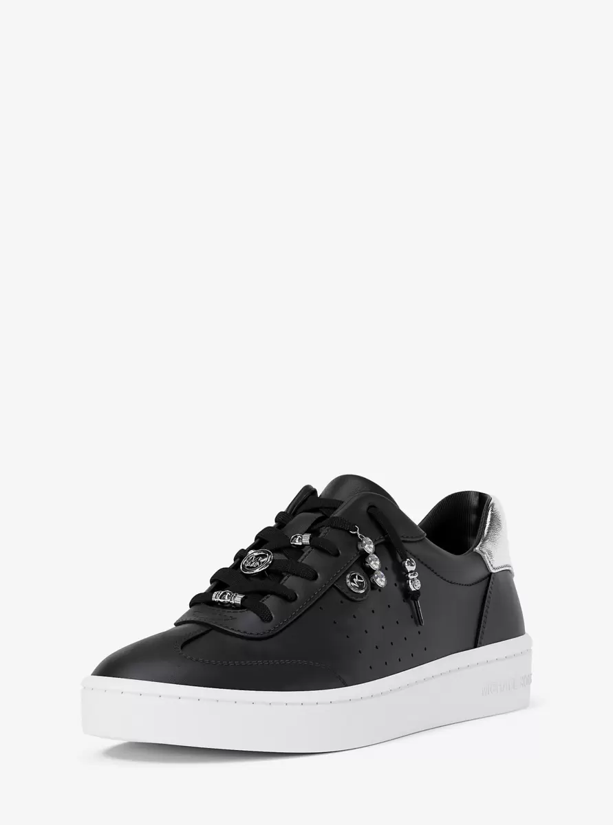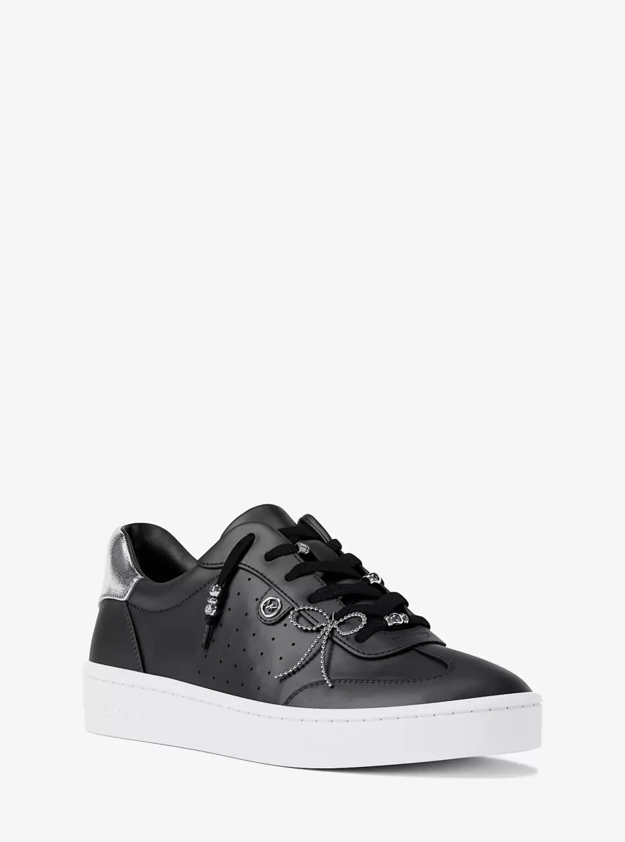 Meet the Scotty: a sleek low-top sneaker inspired by classic soccer silhouettes. This leather pair features sporty perforations along the sides, metallic accents and high-shine charms for added dimension. The styling options are endless, but we think they’ll look great teamed with the season’s light-washed denim on weekends.
