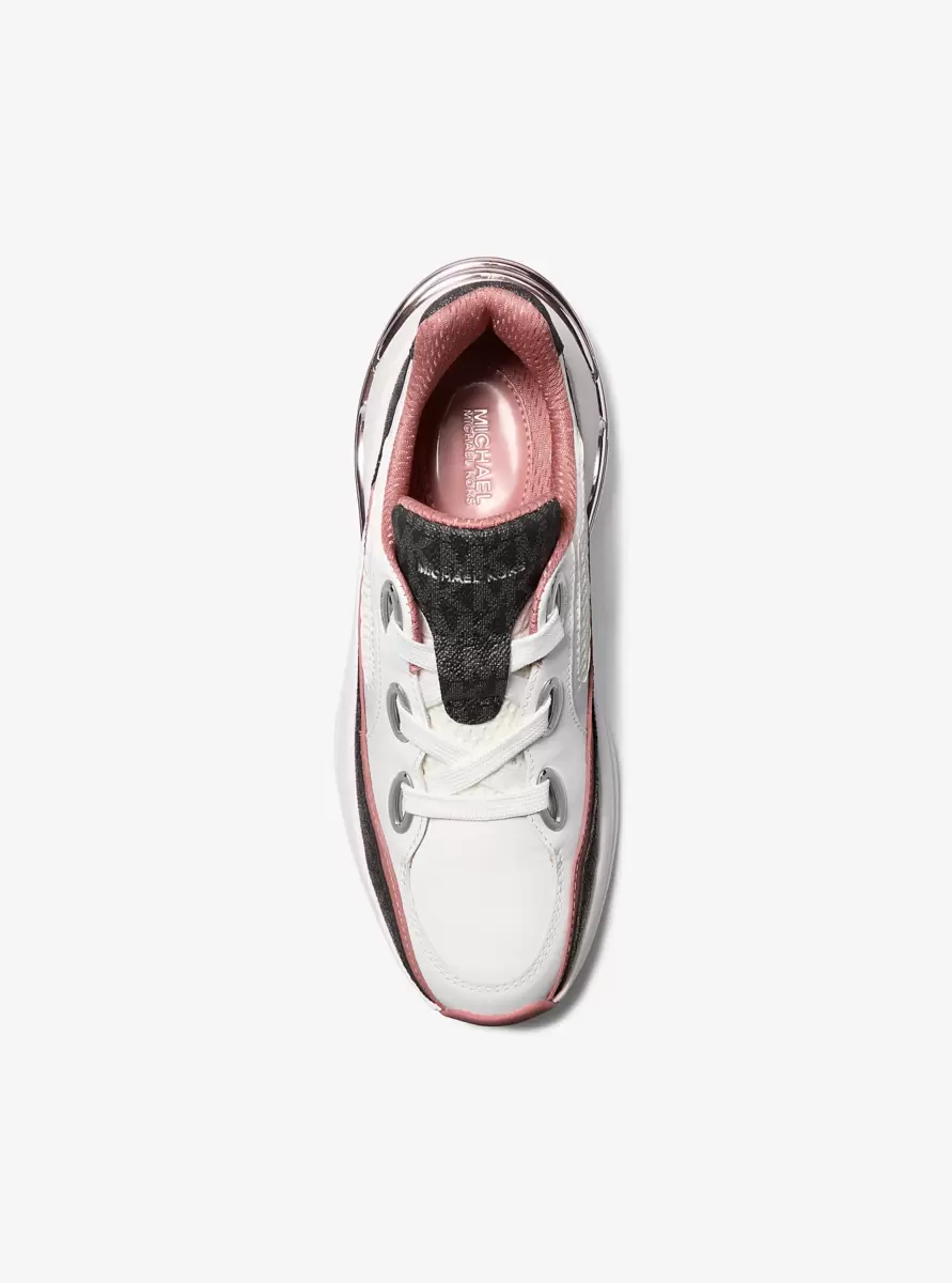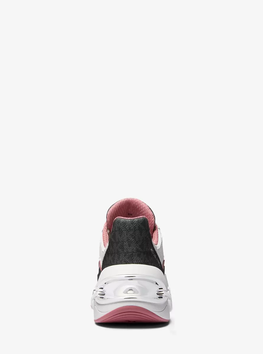 Crafted from a tactile combination of leather, Signature logo-print canvas and mesh, these Toni trainers deliver statement-making style with every step. Grommets for the laces and an exaggerated rubber sole with chain-link cutouts offer a glamorous finishing touch. Team them with everything from leggings to denim to maxi dresses.