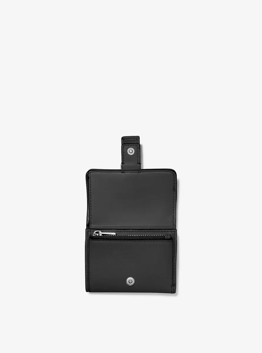 • Wallet• Leather• 100% leather• Silver-tone hardware• 4″W X 3.5″H X 2″D• Interior details: bill compartment, back zip pocket, 4 card slots, back slip pocket• Lining: 100% polyester• Snap fastening• Imported
