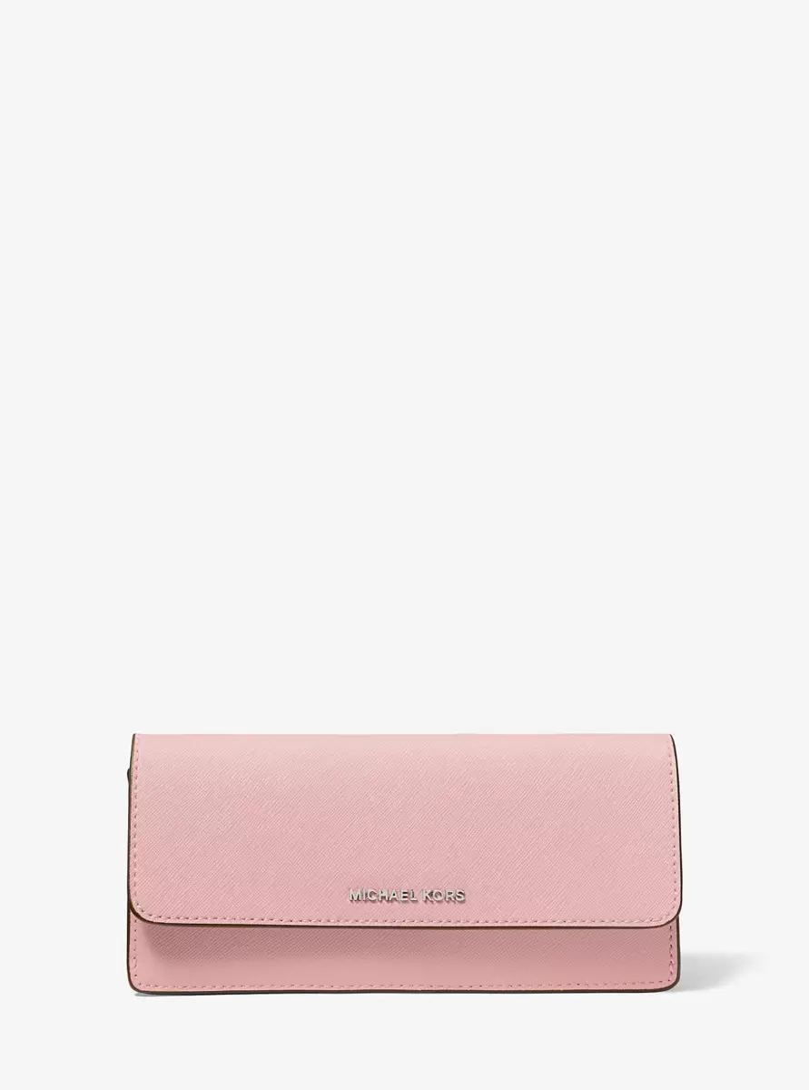 A timeless accessory day after day, year after year. In rich Saffiano leather, our Jet Set snap-front wallet has space to store all your essentials with multiple interior card slots and a zip pocket on the back. Slip it into your favorite bag, or use it as a clutch by carrying it solo.