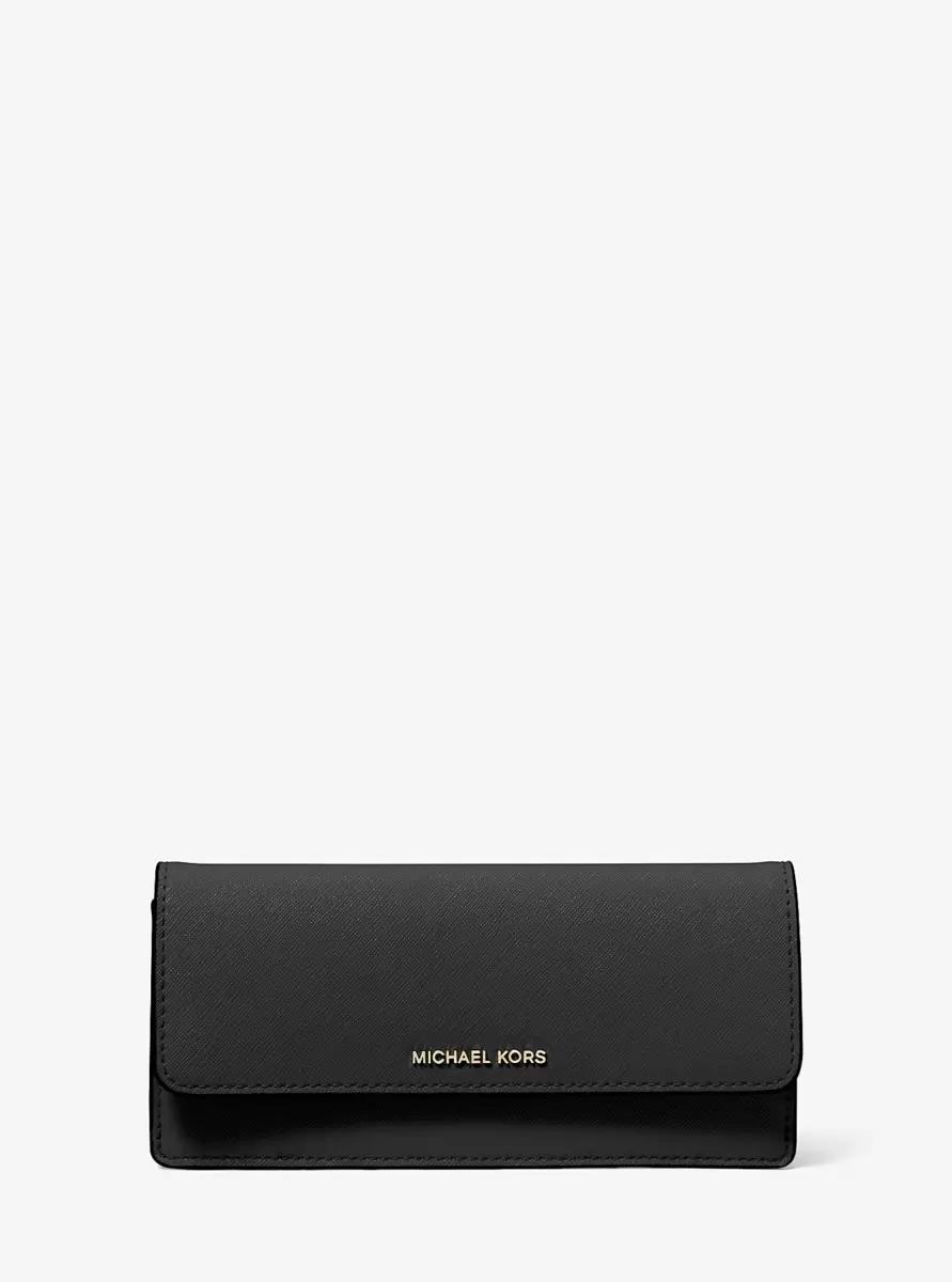 A timeless accessory day after day, year after year. In rich Saffiano leather, our Jet Set snap-front wallet has space to store all your essentials with multiple interior card slots and a zip pocket on the back. Slip it into your favorite bag, or use it as a clutch by carrying it solo.